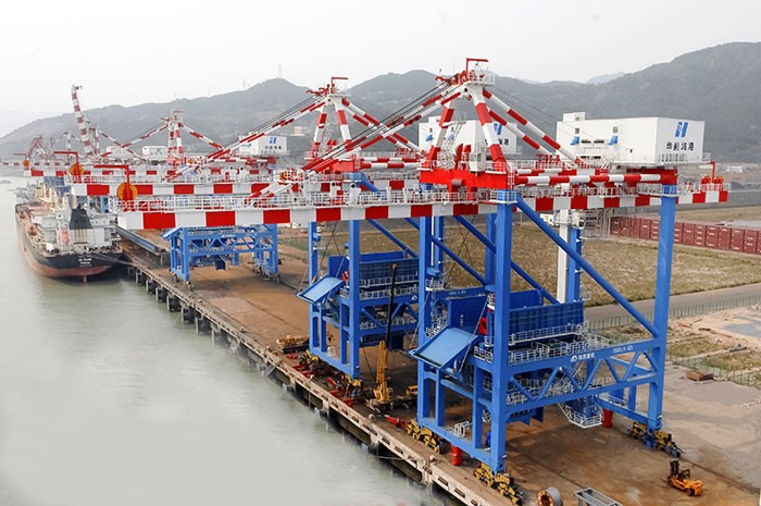 | 煙臺港萬華工業(yè)園碼頭1500t'h橋式抓斗卸船機(jī) |