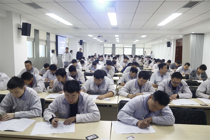 當天上午8:30,在研發(fā)大樓201培訓室,鉗工、數(shù)控加工、起行工三個工種100余人進行了理論比賽考試。